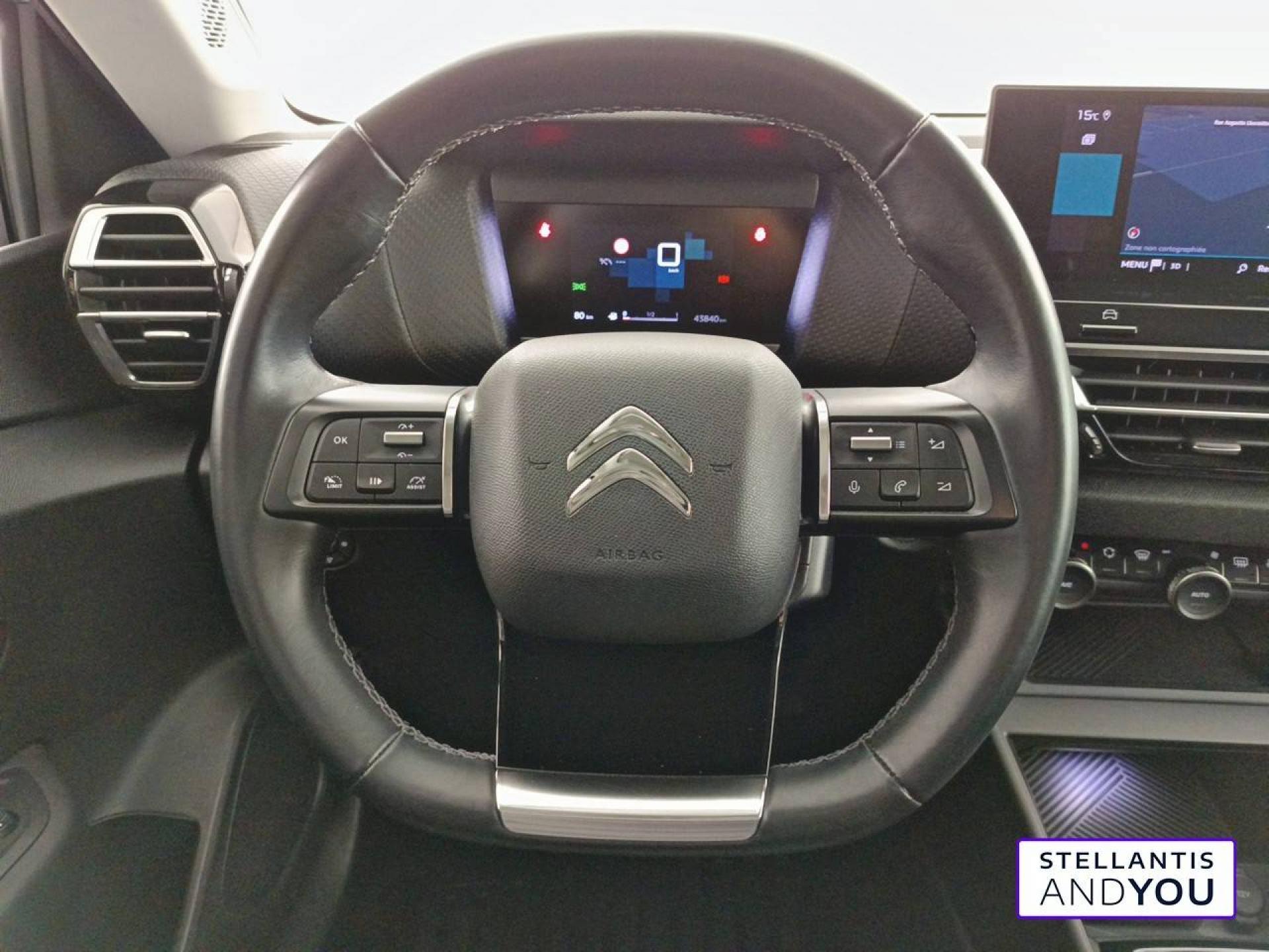 ABS avec REF, AFU et ESPClimatisation automatique bizoneConnect Assist : Citroën Connect Box avec Pack SOS et assistance inclusConnect Nav : Citroën Connect Nav numérique sur tablette tactile 10'' comprend le système de navigation TomTom, la reconnaissance vocale et durant 3 ans les services Connect Nav (inclut les services « Zones de danger », « Info Trafic », « StFeux diurnes à LEDGarnissage textile effet cuir Noir/Tissu Gris Ambiance Metropolitan Grey + Sièges Advanced ComfortJantes alliage 18" AEROBLADE DiamantéesKit mains libres Bluetooth et prise USB (type A)Pack Color Gris TexturéPack Drive Assist Aide au stationnement AV et latéral, Commutation automatique des feux de route, Régulateur de vitesse adaptatif avec fonction Stop & Go,Système de surveillance d'angle mortPack Safety - Active Safety Brake - Alerte active de Franchissement Involontaire de Ligne - Alerte Attention Conducteur - Alerte Risque Collision - Coffee Break Alert - Reconnaissance des panneaux de vitesse et recommandation - Régulateur-limiteur de vitesse - Témoin de non-bouclage dePack Safety 2Pack Style Jonc chromé sur les lécheurs de vitres latérales,Vitres et lunette AR surteintéesProjecteurs antibrouillard LED avec éclairage statique d'intersectionProjecteurs LED avec signature lumineuse en VVolant cuir pleine fleur