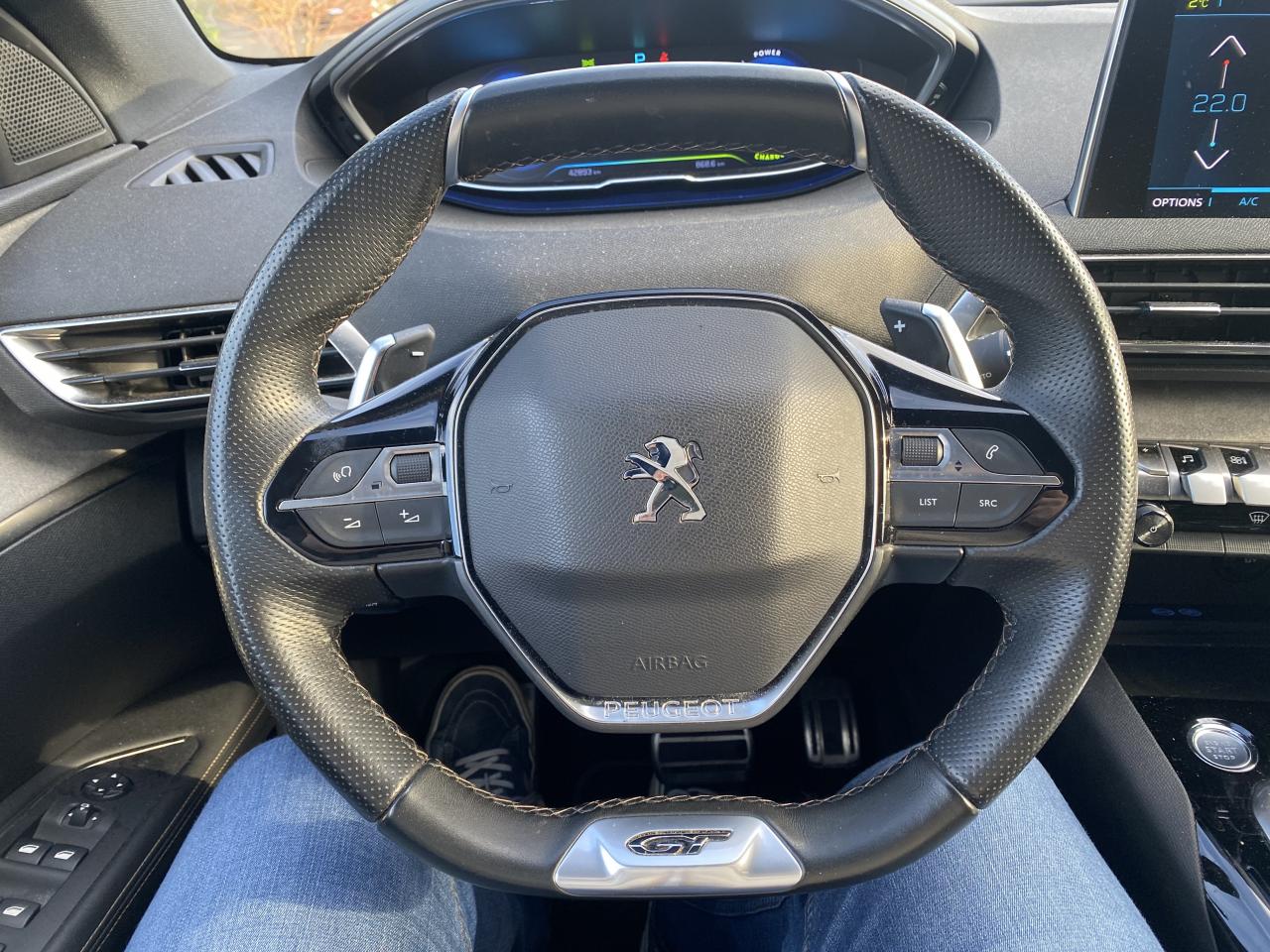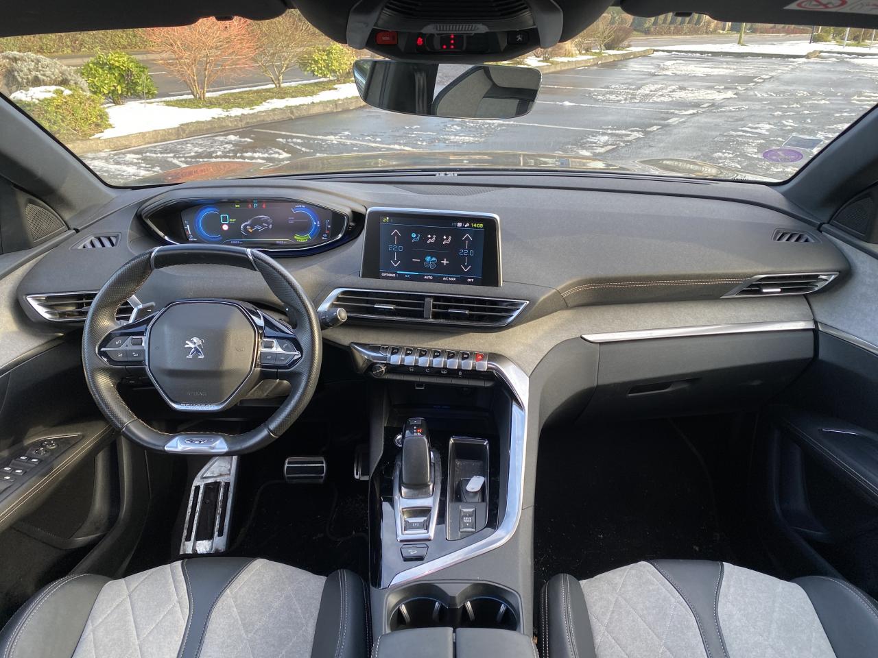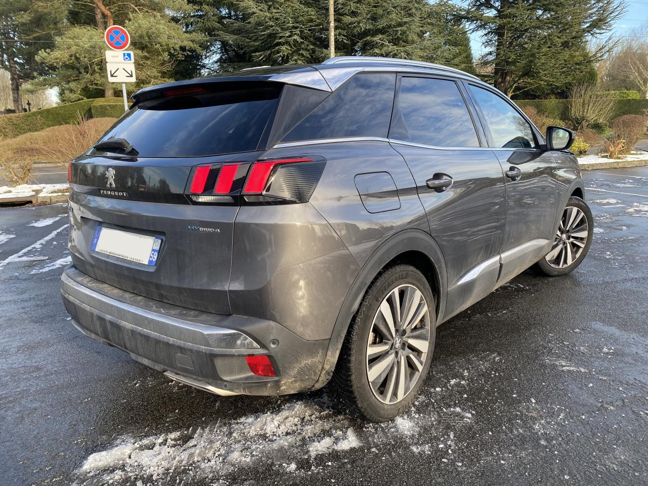2 spots de lecture à l'arrièreABS avec répartiteur électronique de freinage (REF) et aide au freinage d'urgence (AFU)Accès et démarrage mains-libresAccoudoir central avant à ouverture papillon, avec compartiment de rangement éclairé et réfrigérableAide graphique et sonore au stationnement arrièreAir conditionné automatique bi-zone avec aérateurs aux places arrièreAirbags frontaux conducteur et passager adaptatifsAirbags latéraux conducteur et passager avantAirbags rideaux de tête aux places avant et arrièreAlerte de temps de conduiteAppuis-tête à sécurité optimisée réglables en hauteur sur les sièges conducteur et passager avant ainsi que sur les places latérales arrièresAVAS : système d'alerte sonore du véhicule émis à faible allure en roulage électrique, audible depuis l'extérieur pour la sécurité des piétonsBadge "HYBRID4" sur ailes avant et volet de coffreBandeau de pare-choc arrière chroméBanquette rabattable 1/3 - 2/3 (commandes dans le coffre) avec accoudoir et trappe à skisBarres de toit longitudinales profilées en aluminiumBoîte à gants floquée et éclairéeBoitiers de rétroviseurs extérieurs Noir Perla NeraCalandre avec jonc périphérique chrome brillant et satiné, damier chromé et lettrage Peugeot noirCanules d'échappement chroméesCeintures avant à 3 points, réglables en hauteur, avec prétensionneurs et limiteurs d'effortCeintures de sécurité arrière trois points à enrouleur (x3), avec prétensionneurs et limiteurs d'effort aux places latéralesChargeur 3,7 kW + Cable de recharge T2 avec prise muraleCommande de verrouillage à distance (deux plips)Contrôle de la charge de la batterie à distanceContrôle dynamique de stabilité CDS avec antipatinage électronique ASRDécors de planche de bord et panneaux de portes AlcantaraDécors de planche de bord et panneaux de portes bois chêne gris en liaison avec le Pack Cuir 'NappaDécors intérieurs (baguettes de planche de bord et panneaux de portes, enjoliveur de console) chrome satinDétection de sous-gonflage indirecteDirection assistée électrique, avec colonne de direction réglable en hauteur et profondeur (mécanique)Driver Sport PackEclairage intérieur à LED : plafonniers, rangements, coffreEcrous antivolEnjoliveurs d'arc de pavillon en inoxEnjoliveurs en inox sur les protecteurs de bas de portesEssuie-glace arrière avec déclenchement automatique en marche arrièreEssuie-vitre avant avec système de lavage 'Magic Wash'Filets aumônières au dos des sièges avantFixations pour trois sièges enfants suivant norme ISOFIX aux places passager avant et latérales arrièreFonction Mirror ScreenFrein de stationnement électrique avec aide au démarrage en penteHabitacle et ciel de pavillon Noir MistralHayon mains libres : volet de coffre motorisé avec accès mains libresIndicateur de rapportInserts d'ailes avant chromésJantes alliage 19" 'Washington'Joncs de vitres latérales en inoxKit de dépannage pneumatiqueLève-vitres électriques avant et arrière, séquentiels et antipincementLunette arrière chauffante avec antennes sérigraphiéesMiroirs de courtoisie éclairésPédalier et repose-pied conducteur en aluminiumPack City 1Pack Drive Assist PlusPack Eclairage d'ambiancePack Safety PlusPack VisibilitéPassages de roues rapportés noirs élargisPeugeot Connect : Navigation 3D connectée avec reconnaissance vocale + PEUGEOT Connect SOS & AssistancePeugeot i-Cockpit combiné tête haute numérique reconfigurable, écran tactile capacitif 8" et volant compact multi-fonctionsPlafonnier avant avec spots de lecture (x2) et plafonnier arrière à extinction temporiséePlanche de bord surpiquéePlancher de coffre fixe avec articulation pour accès au coffre de rangement du câble de rechargePré-chauffage / climatisation du véhicule à distancePrise 12V (x3) : à l'avant, à l'arrière et dans le coffrePrise USBProjecteurs 'Peugeot Full LED Technology'Régulateur et limiteur de vitesseRétroviseur intérieur photosensible frameless (sans cadre) avec témoin lumineux d'information roulage mode ELECTRICRétroviseurs extérieur électriques et dégivrantsRétroviseurs extérieurs rabattables électriquement avec éclairage d'approche à LEDRadio 6 HP, bi-tuner compatible MP3 et connectivité Bluetooth (audio streaming, kit mains libres), avec commandes au volant, écran tactile capacitif 8"Radio numérique terrestreReconnaissance étendue des panneaux de signalisation et préconisation de vitesseSécurité enfant électrique des vitres arrièreSélecteur de modes de conduite modes Electric/Sport/HYBRID/4WDSabot de pare-choc avant gris métalliséSellerie TEP & Alcantara 'Gris Gréval'Seuils de portes avant en inoxSiège conducteur à réglage lombaireSiège conducteur réglage en hauteurSiège passager à réglage manuel en hauteurSiège passager avant avec mise en tabletteSurtapis aux places avant et arrièreTeinte de caisse Gris HurricaneToggle Switches' chromés (touches 'piano' d'activation des fonctions de l'écran tactile)Toit 'Black Diamond' (toit Noir Perla Nera)Trappe de recharge électrique sur l'aile arrière gauche, avec indicateur lumineux d'état de rechargeVerrouillage automatique de tous les ouvrants en roulantVitres latérales et lunette arrière surteintéesVitres latérales feuilletées acoustiques à l'avantVolant cuir pleine fleur perforé avec bagues chrome acier et badge GT
