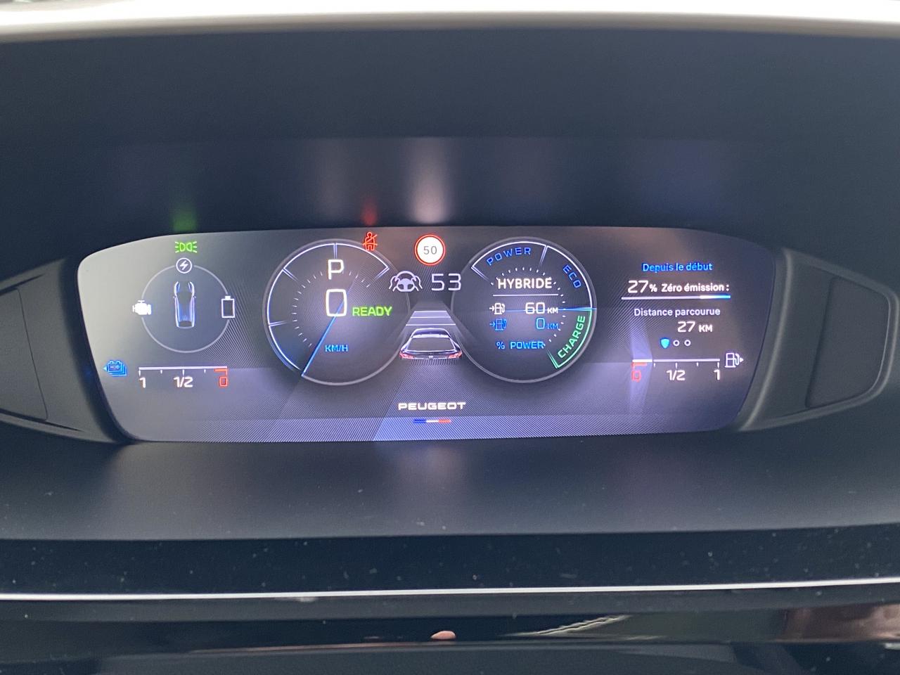 2 ports USB-C à l'avant et à l'arrière2 télécommandes 3 boutons4 poignées de maintienAccoudoir central avant avec rangementADML ( Accès et Démarrage mains libres)Aide au stationnement arrièreAide au stationnement avantAir Quality System (sonde de pollution, couplée à un filtre à charbon actif Haute Efficacité)Airbags frontaux conducteur et passager adaptatifs (passager neutralisable), latéraux avant et rideaux avant et arrièreBanquette AR rabattable 1/3-2/3Câble de recharge mode 2 (10A, 2,3kW) pour prise domestique standardChargeur embarqué 3,7kWClimatisation automatique bizoneCommutation automatique des feux de route et essuie vitre avant à déclenchement automatiqueCoques de rétroviseurs extérieurs en Noir BrillantDécors textiles planche de bord et panneaux de portesDémarrage mains libresDétection de sous-gonflage des pneumatiquesDirection assistée électriqueEclairage d'approche dans rétroviseurs extérieursEclairage d’ambiance 8 couleursESP (contrôle dynamique de stabilité ) + aide au démarrage en penteFeux diurnes à LED sous projecteursFixations Isofix (aux places latérales arrière)Fonction BluetoothFonction Miror Screen sans filFrein de parking électriqueFreinage d'urgence automatique piloté par caméra et radarGrille de calandre avant chroméeInformation sur la position,consommation,télémaintenance,statistiques de roulage et état de charge de la batterieJantes alliage 19" diamantées GraphiteKit de dépannage pneumatiqueLécheurs de vitres noir brillantLève-vitres électriques arrière à fonctions séquentielle et anti-pincementLève-vitres électriques avant à fonctions séquentielle et anti-pincementMonogrammes latéraux HybridNavigation connectée avec écran central tactile 10'' et écran avec i Toggles virtuels personnalisablesPack Rear Traffic DétectionPack SafetyPare brise teinté acoustiquePare-brise en verre feuilletéPeinture métallisées Bleu ObsessionPeugeot i Cockpit avec combiné d'instrumentation numérique 10'' personnalisablePorte gobelets avantPré conditionnement thermique via MyPeugeot ou l’écran centralPrise 12V à l'avantProjecteurs à technologie LEDRadio DABReconnaissance étendue des panneaux de circulationReconnaissance vocale en langage naturelRéglage lombaire conducteurRégulateur de vitesse adaptatif avec fonction Stop & GoRétroviseurs extérieurs électriques avec clignotants à LED intégrés, dégivrants et rabattables électriquementSélecteur de modes de conduite modes Electric/Sport/HYBRIDSellerie Tri-matière Tissu Fractil et Baladin/TEPSièges conducteur et passager réglables en hauteurSièges dynamiques avec appuis-tête avant deux voiesSystème audio 6 haut-parleursVisio Park 1 (caméra de recul)Vitres latérales arrière et lunette arrière chauffante temporisée surteintéesVitres latérales feuilletées acoustiques à l'avantVolant à réglage manuel en hauteur et en profondeurVolant croûte de cuir