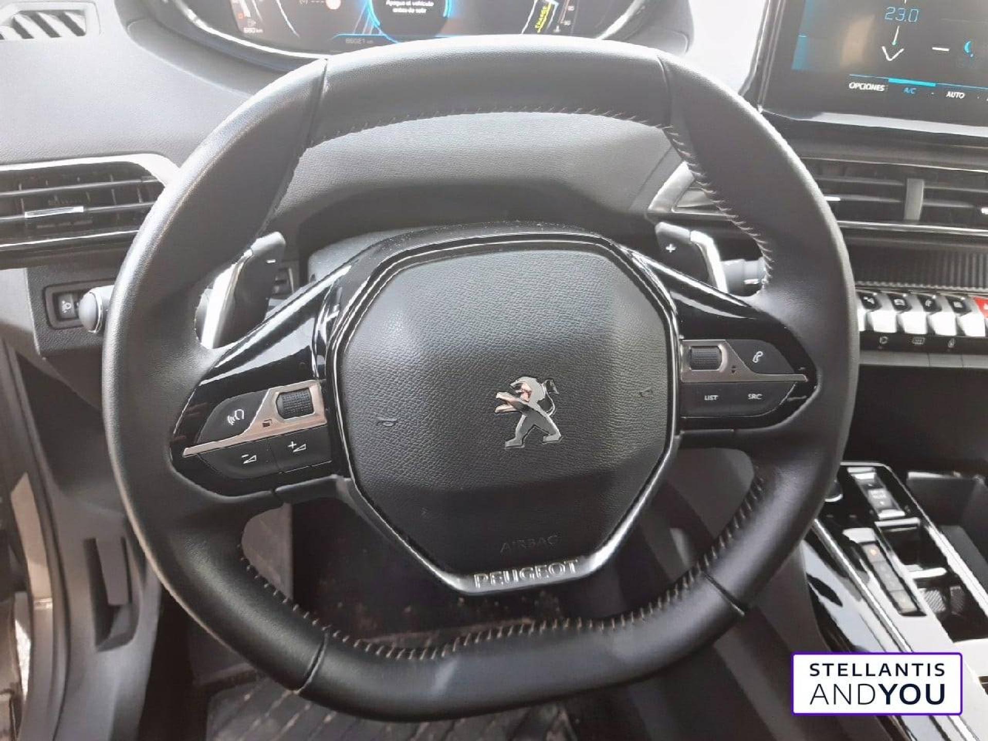 Barres de toit longitudinales en aluminiumFeux AR à LED avec effet 3D, clignotants à défilementJantes alliage 18" diamantées DETROIT bi-ton Gris Storm brillant avec pneumatiques 225/55 R18 102 VNavigation 3D connectée avec écran tactile capacitif 10" HD Avec reconnaissance vocale Cartographie Europe Services de Navigation connectée TomTom (TomTom Traffic, Prix, Carburant, Parkings, Météo, Recherche Locale) et Alertes Zones de Danger avec abonnementPack City Aide au stationnement AR (Graphique et sonore) Visiopark 1 (Caméra de recul avec restitution sur l'écran tactile d'une vue AR et d'une vue de dessus de l'environnement AR du véhicule)Pack Eclairage d'ambiance - Eclairage à LED des caves à piedPack Safety Plus Pack Safety Alerte active de franchissement involontaire de ligne et bas côté Alerte attention conducteur Commutation automatique des feux de routePack Visibilité Allumage automatique des feux de croisement; Essuie vitre AV à déclenchement automatique; Eclairage d'accompagnement automatiquePlafonniers AV, rang 2 et rang 3 à LED avec 2 spots de lectureProjecteurs "Peugeot LED Technology" avec feux diurnes à LED sous projecteursRégulateur / limiteur de vitesse avec Préconisation Limitation de VitesseVolant croûte de cuir Mistral